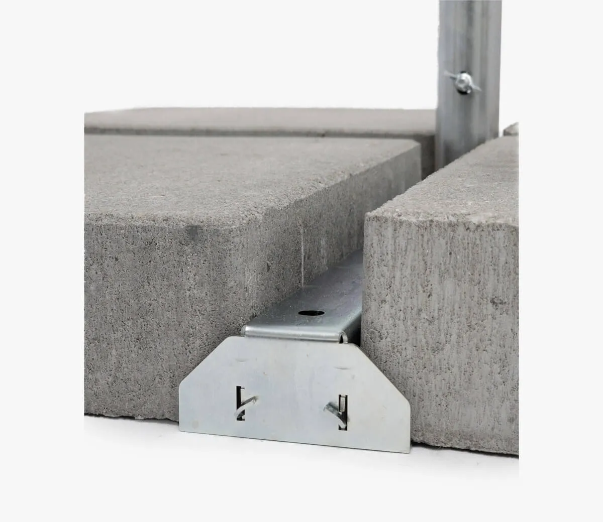 Betonová základna pro barový slunečník – pevná báze (85 × 85 × 25 cm) s objímkou stožáru Ø 55 mm, kombinující beton a ocelové profily. Zajišťuje stabilní ukotvení v oblastech se středním větrem na rovných i zhutněných površích. Rychlá montáž sešroubováním profilů. Součástí balení jsou dodatečné betonové desky pro ještě vyšší stabilitu.