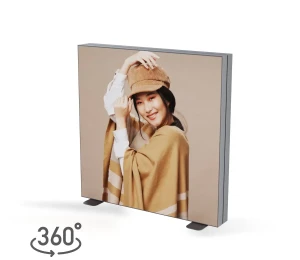 Hliníkový rám ZEN Backlight Double 120 – 200 × 200 cm je velký oboustranný LED lightbox s textilní grafikou. Ideální jako zavěšený prvek, paraván nebo osvětlená příčka. Hloubka 12 cm a systém SEG umožňují 3D efekt a rychlou výměnu grafiky.