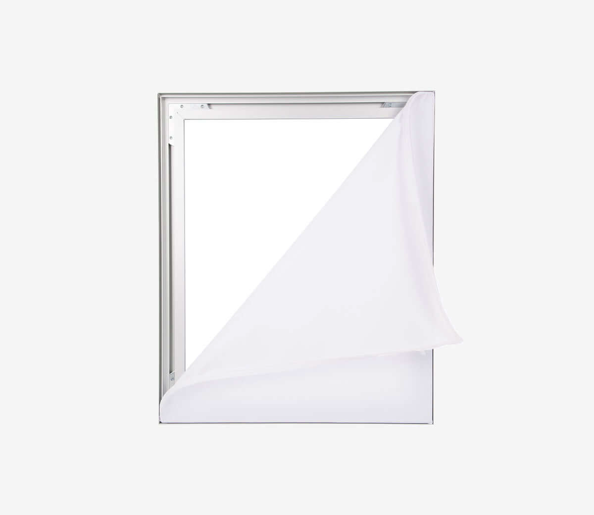 Textilní grafika se silikonovou páskou 14 × 3 mm se zasouvá do drážky hliníkového profilu, což zaručuje hladký povrch bez záhybů a snadnou výměnu obsahu.