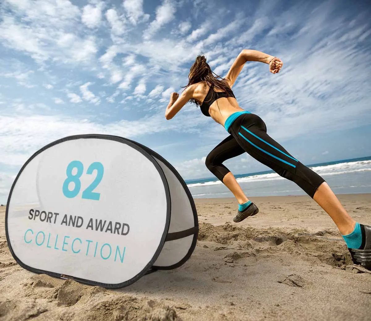 Plážový display Stowaways 200 × 100 cm — impozantní a mobilní oboustranná reklama