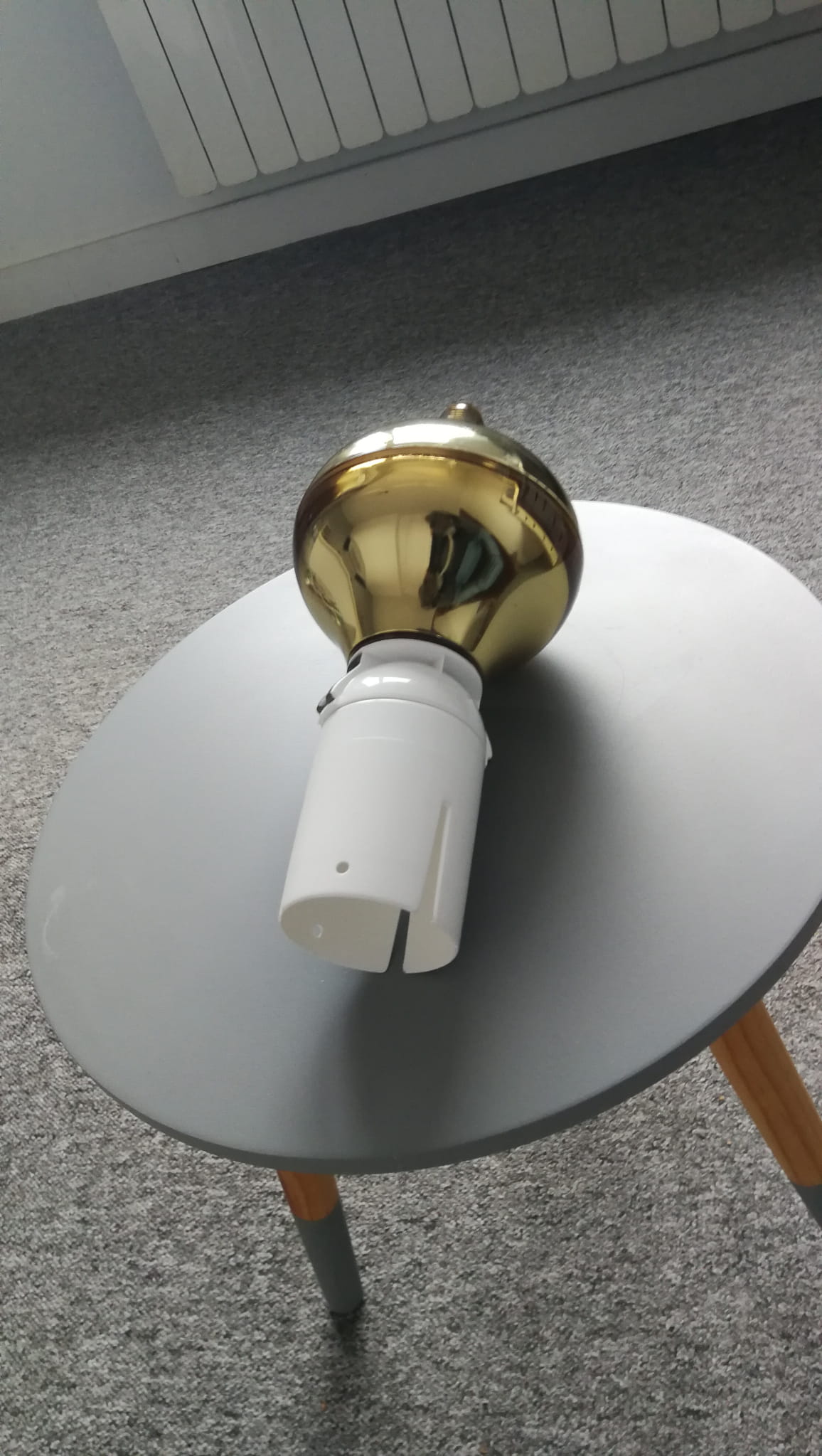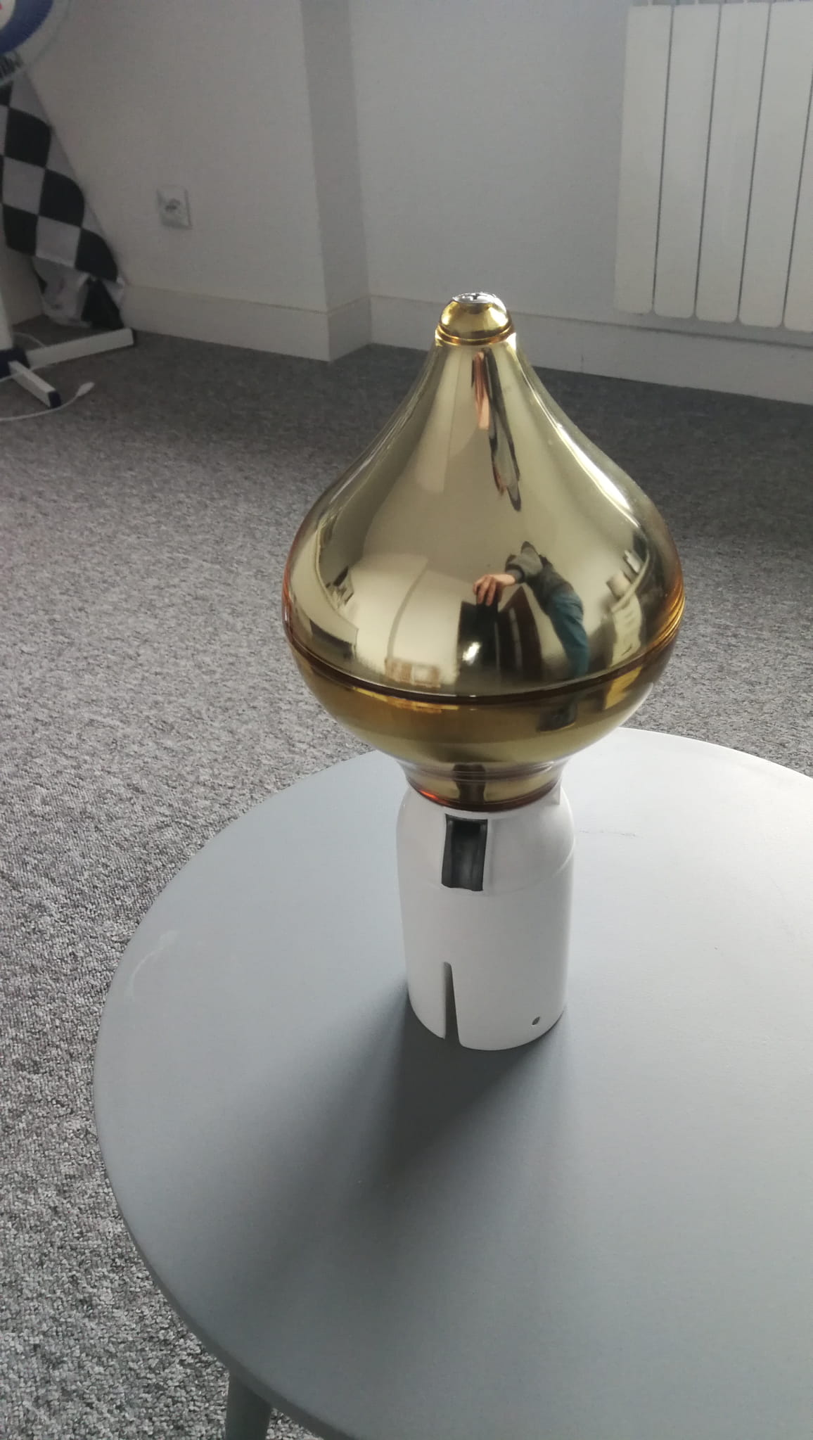 Cabeza giratoria de mástil con un diámetro interior de 65mm, aplicada al mástil. Acabado con un remate decorativo cebolla oro brillante aplicado a la cabeza. Calidad sueca