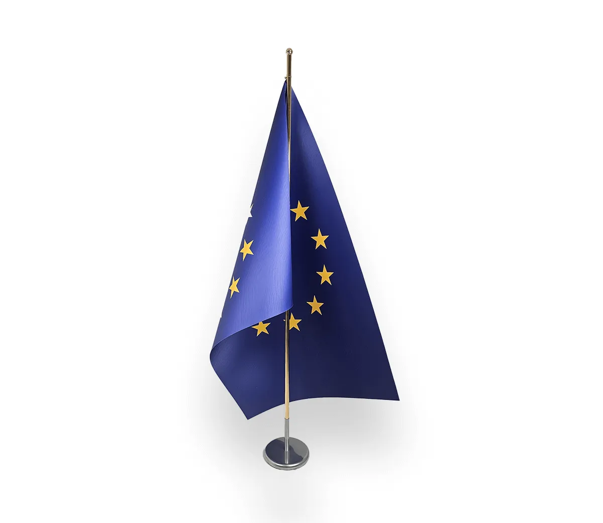 Flaga gabinetowa w formacie 180 × 120 cm z połyskującej satyny 420 g/m². Druk dwustronny, cięcie do wymiaru, metalowe oczka w kolorze srebrnym w rogach do montażu. Dostarczana na gilzie, aby wykluczyć zagniecenia – gotowa do natychmiastowej ekspozycji podczas uroczystości i spotkań oficjalnych.