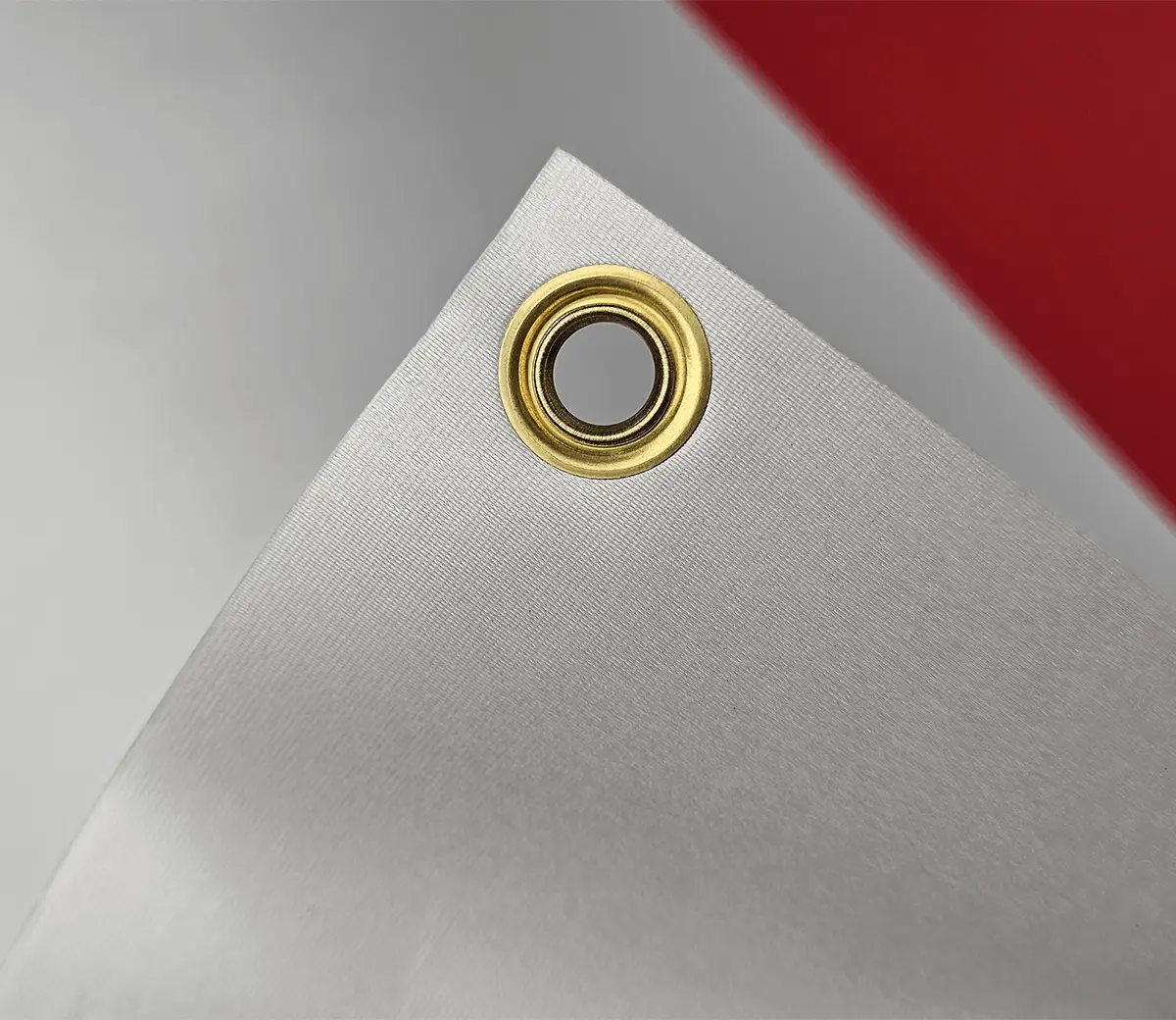 - Wykończenie: cięcie do wymiaru + oczka metalowe Ø 12 mm (w kolorze srebrnym) w rogach po jednej ze stron.