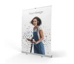 El roll-up Mizu 150 x 200 cm ofrece máxima visibilidad en grandes eventos y amplios puntos de venta. Su construcción reforzada en aluminio y la superficie extra ancha aseguran un impacto profesional.