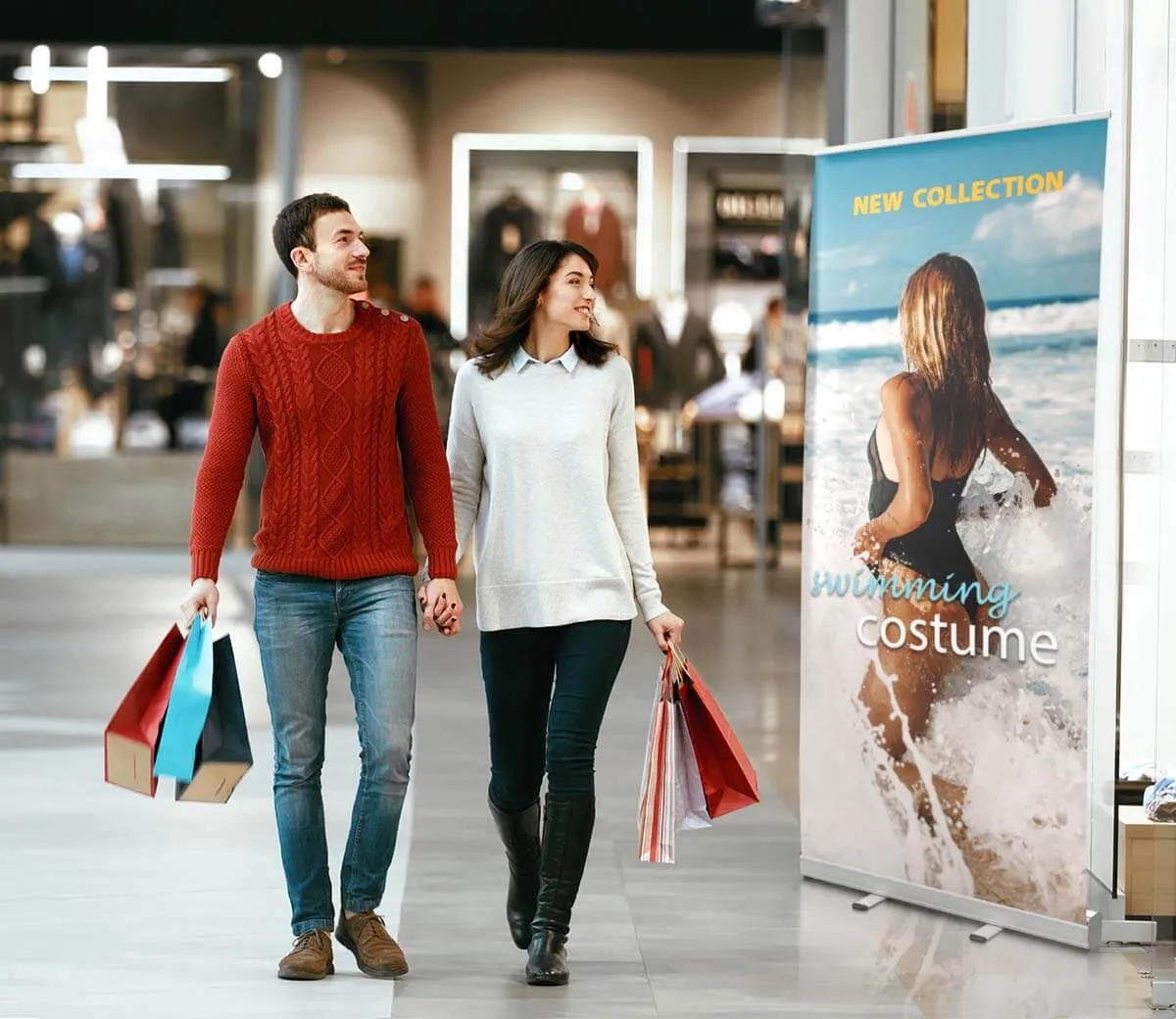 Medios e impresión — elige Blockout 440 g/m² (cobertura total, colores intensos, sin trasparencias) o película roll-up especializada para un enrollado/desenrollado fluido. Impresión en UV o disolvente HR para máxima durabilidad y detalle.