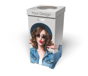 Coș de prezentare tip bulk 38 x 35,7 x 75,5 cm – coș expozițional din carton cu imprimare UV personalizată