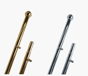 Catarg de aluminiu 220 cm pentru suporturi de steaguri de interior, terminat cu bilă lăcuită. Proiectat pentru diametru de 25 mm, disponibil în culori aurie sau argintie, vopsit în câmp electrostatic.