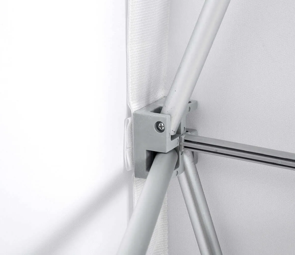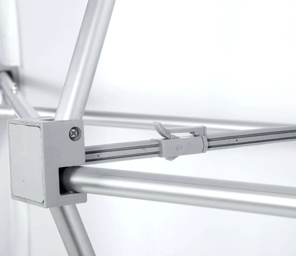 - Cadru: pop-up de tip „păianjen”, ușor și stabil