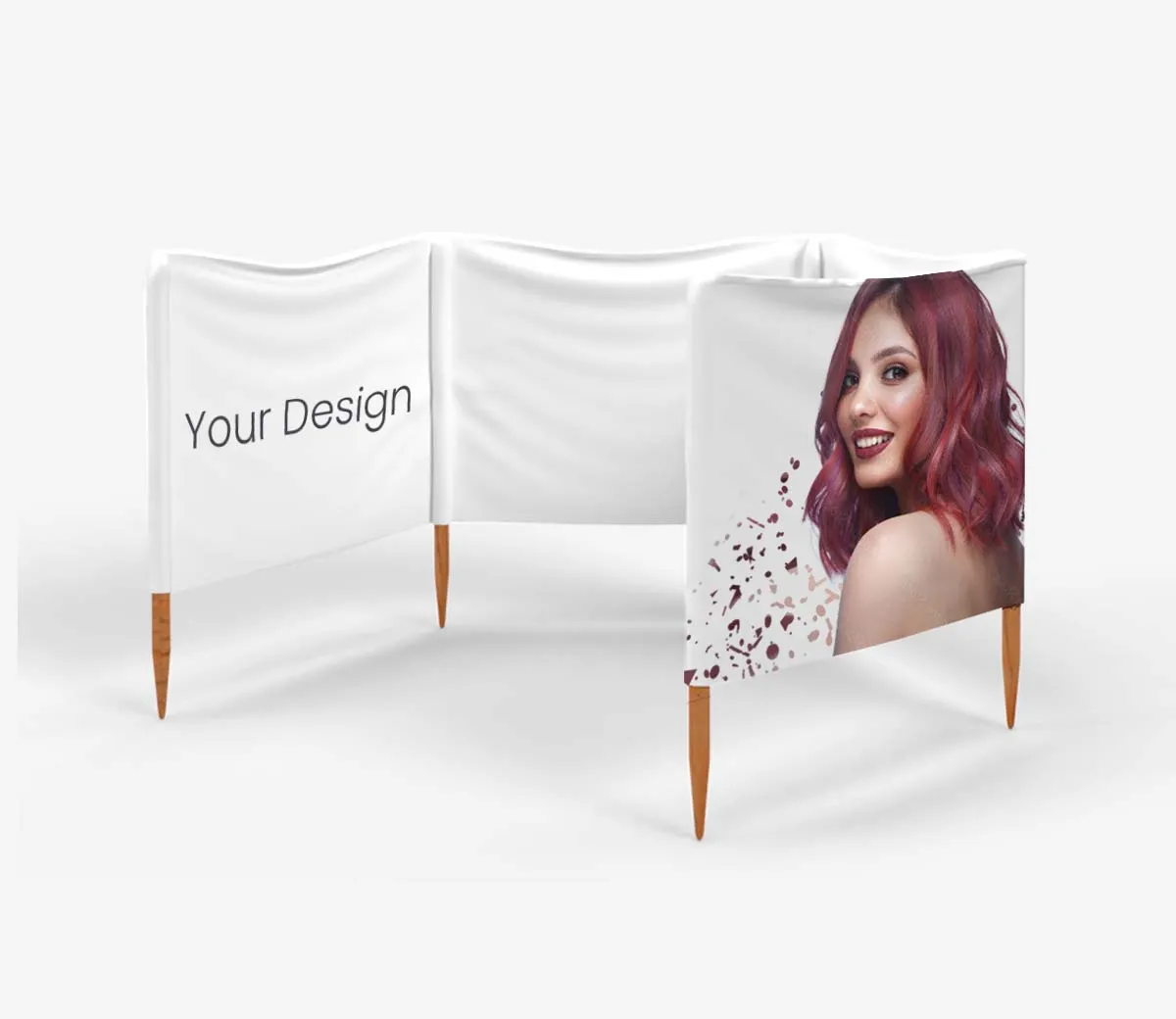 Pe akcesoria-flagowe.pl poți comanda paravan cu orice grafică, logo sau slogan. Paravanul se potrivește perfect cu șezlonguri personalizate – împreună formează un set publicitar coerent pentru orice ocazie.