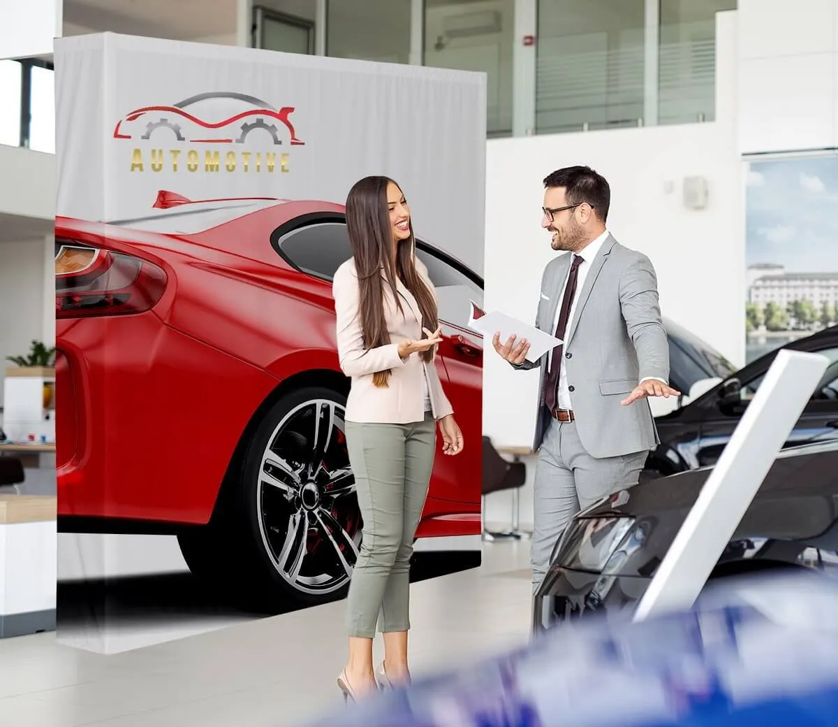 - decor de impact în spații retail extinse și showroome, inclusiv activări indoor/outdoor.